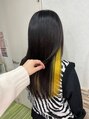 - 黒髪ベースにイエローインナーで可愛く仕上げました!黒と黄色は相性ばっちりですね♪#シールエクステ#栃木