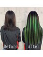 ブラック×グリーン#シールエクステ#セクションカラー