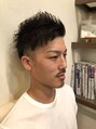 前髪を立ち上げた爽やかスタイルです!サイドだけでなくバックも1周 ツーブロックにすることで遊び心も♪