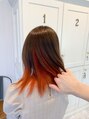 流行りのインナーカラーです!ブラウンとオレンジの相性は抜群です!オレンジはブリーチ1回でも綺麗になります!是非一度お任せください!