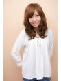 顔まわりの軽さとカールの重なりで創るフォルムの重さをmixしたフェミニン&ガーリーヘア。ベージュカラーで透明感up。柔らかくみせたい方にオススメ!