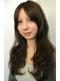 おおきくゆるい平巻き中心のうねりをつけたロングスタイルです。ワンレンベースのあまりそぎすぎていない厚みのある状態でクリープパーマをすることでおおきいやわらかな雰囲気をつくっています。