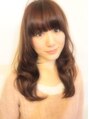 ワンレンベースのセミディに顔まわりにレイヤーをくわえて動きを足しています。 柔らかで大きなSカールをえがくように中太のロッドでクリープパーマをオン! 厚めバングとゆるいうねりでかわいらしさがアップしますよ!