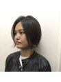 お客様ヘアです。前下がりショートに濃いめのアッシュでクールに。外ハネ仕上げでモードすぎないラフな質感。お客様の肌色に似合わせたカラー提案をしています!ぜひお任せ下さい。