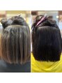 朝のスタイリングが楽になるように、髪質、状態に合わせて薬剤選定しています。顔周りなど負担のかかりやすい場所、以前ストレートしている部分などは薬剤を分けて調合しています。ストレート/広島/西区/横川/縮毛矯正/白髪染め/髪質改善