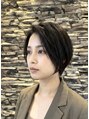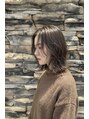 『輪郭補正』を考えた前下がりボブ。前髪の長さでほお骨を隠して小顔に見えるようにカットしました。すきバサミは使わないで髪質改善しながらシルエットは重めに、色で軽さと透明感を作りました♪