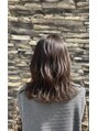 鎖骨下のミディアムヘアに大きめのロッドにやや強めにパーマをかけたカジュアルな雰囲気に♪コスメパーマを使用してかけるので、傷みは最小限に抑えながら4ヶ月くらい楽しむ事ができます。