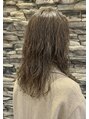 ミディアムからミディアムロングの長さの髪に大きめのスパイラルパーマをかけてます。スタイリングは、ラフに仕上げて欲しいので濡らした髪にバームを揉み込んだら自然乾燥で完成です♪