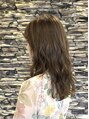 カットは、鎖骨下のゆるやかな前上がりベース。低めにレイヤーを入れてます。デジタルパーマで『弾力のある大きめカール』を作りました。スタイリングは、8割乾かした後にバームを下から上に優しく揉み込むだけです。
