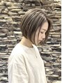 前髪なしの前下がりのボブスタイル。えりあしは、短くカットして、サイドは小顔に見せる為に顎下3センチでカット。スライドカットで毛量調整して軽くしてます。カラーは、イルミナカラーのグレイジュで透明感を出したら、完成です♪