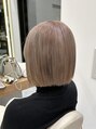 えりあしに生えグセがあるお客様。乾かしただけでもまとまりやすくなるように…!ぎりぎりまで切るから可愛いぱつっとボブスタイルです(^^)カラーするのも初とのことだったので、ブリーチを使わず出来る限り明るめに挑戦しました!