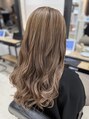 極細ハイライトを入れて、イルミナカラーで透明感たっぷりのベージュに。赤みを抑えて柔らかく見えるので、大人女性にもおすすめ。巻いた時に立体感が出て、伸ばしかけでも可愛く決まります。