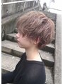 コンパクトなすっきりマッシュヘアをベースに毛量&質感調節カットでふわふわなシルエットに★カラーは透明感あるミルクベージュ★
