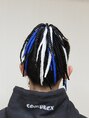 地毛はツーブロックタイプのソフトモヒカンでした。(トップの髪をを長めに残し、サイドから襟足にかけてはスッキリ刈り上げたスタイル。)をMIKI店が得意のブレイズ(ショートブレイズ)ブラック系、白系、青ブルー系でモデルの魅力を最大限に表現しました☆