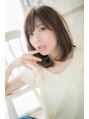 肌質良く見える♪透明感あるベージュカラーとシンプルなボブデイスタイルに目にかかる位のうざバングや斜めバングでフェミニンさもプラス。旬のメルトカラーやグラデーションカラーでカジュアルにキメてもおしゃれ♪