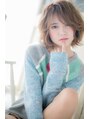 耳上からリップラインにかけてふわりと揺れる、浮遊感たっぷりのルーズな無造作ウェーブがポイント。斜めバングの毛先にウェーブがかかって扱いやすさも◎明るいベージュカラーでハッピー☆ふわミディスタイルに。