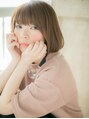 ★お気に入りスタイルは【ブックマーク】を★ワンレングスのナチュラルボブにハイトーンのイエローアッシュ系のカラーが個性的な表情をプラスさせ、オシャレ感がUP☆うざバングやベビーバングも◎