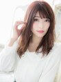 ★お気に入りスタイルは【ブックマーク】を★斜めバングで小顔に見せて、くせ毛風でルーズなウェーブとレッド系カラーがエレガンスで大人かわいいセミディ。耳かけしてフェアリーにも♪個性的なアシンメトリーや前下がりフォルム、バイヤージュも旬♪
