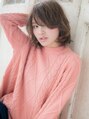 ★お気に入りスタイルは【ブックマーク】を★顔周りの髪をスイングさせて、頬骨やエラのハリをカバーしたエアリーミディ。サイドに流した長めの斜めバングで目力UPし、大人かわいい雰囲気に。イノセントカラーがハーフ顔な印象にも見せてくれます♪