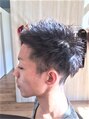サイドから襟足までがっつり刈り上げたワイルドスタイル(^_-)-☆前髪は左サイドから流すように立ち上げています」。