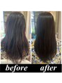 従来の縮毛矯正とは全く異なり髪を弱酸性のままストレートに髪質改善する最新の縮毛矯正です。独自の研究によるサプリメントケアで髪の間充物質を補いながらかけるため固くならず柔らかいシルクのような手触りになります☆