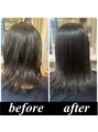 従来の縮毛矯正とは全く異なり髪と同じ弱酸性のままストレートに髪質改善する最新の縮毛矯正です。独自の研究によるサプリメントケアで髪の間充物質を補いながらかけるため固くならず柔らかいシルクのような手触りになります☆
