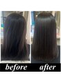 従来の縮毛矯正とは全く異なり髪を弱酸性のままストレートに髪質改善する最新の縮毛矯正です。独自の研究によるサプリメントケアで髪の間充物質を補いながらかけるため固くならず柔らかいシルクのような手触りを実現します。