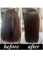 従来の縮毛矯正とは全く異なり髪を弱酸性のままストレートに髪質改善する最新の縮毛矯正です。独自の研究によるサプリメントケアで髪の間充物質を補いながらかけるため固くならず柔らかいシルクのような手触りになります☆