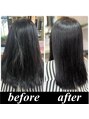 従来の縮毛矯正とは全く異なり髪を弱酸性のままストレートに髪質改善する最新の縮毛矯正です。独自の研究によるサプリメントケアで髪の間充物質を補いながらかけるため固くならず柔らかいシルクのような手触りになります☆