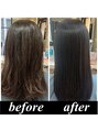 従来の縮毛矯正とは全く異なり髪を弱酸性のままストレートに髪質改善する最新の縮毛矯正です。独自の研究によるサプリメントケアで髪の間充物質を補いながらかけるため固くならず柔らかいシルクのような手触りになります☆