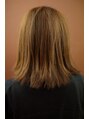 シンプルなボブスタイル。平面的になりがちなストレートスタイルにハイライト&ローライトを入れることで動きが出る様にしました。フェイスラインには太めにローライトを入れて引きしめ効果も狙いました。逆にハイライトでいくと、やわらかい表情になります。