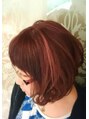 2015年の流行色『マルサラ』流行りのライトブルーの服にも相性バッチリです。一度全体をアッシュで一色に染めた後、一度流して赤味を入れるととても綺麗にマルサラカラーに。ハイライトは前回のを再利用!艶も綺麗で最高です!