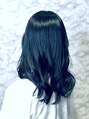 ブルーブラック/ネイビーブルー/コテ巻き風パーマ/ブリーチなし