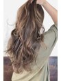 細めのハイライトで繊細に柔らかい印象に仕上げました。コテでランダムに巻いてあげる事によって外国人風スタイルになれます☆