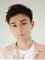 マッシュベースのツーブロックをベースに、ふんわり毛先パーマをプラス。長めに残した前髪をアップバングにセットすることで大人っぽい印象に。