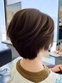 柔らかなレイヤーにツヤ感カラーをプラス。毛先に軽さを出しつつ、深みのあるブラウンで上品な印象に。自然な動きとまとまりで、毎日のスタイリングも簡単です。[松山/松山駅/白髪ぼかしハイライト/ショートカット/ショートボブ/髪質改善/白髪染め]