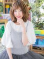 【スタイルは★ブックマーク★が便利】やわらかな空気感を醸す大人かわいいふわミディ。斜めバングで目力UP。厚めバングやオン眉も個性的。くせ毛風カールや耳かけで抜け感を出しても◎(ブリス北浦和店アシスタント棟方の撮影スタイルです。メイク担当:棟方)