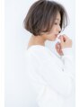 かきあげバングのくせ毛風ワンカールボブ。トップの高さとサイドのやわらかさで骨格補正効果し小顔にメイク。前下がりでクールにしたり耳かけしても大人かわいい髪型に。斜めバングや厚めバングで目力強調しても旬顔。