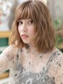 【スタイルは★ブックマーク★が便利】外国人風ベージュカラーとくせ毛風フリンジウェーブでリッチ&グラマラスに格上げしたゆるふわミディ。ナチュラルボブやフェミニンボブ、大人ボブや前下がりボブからの伸ばしかけにもGOOD。(メイク担当:北浦和店 成田)