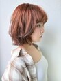 透明感あふれるオレンジベージュが、ボブパーマの動きと相まって大人可愛い雰囲気を演出。ブリーチでしっかり発色させ、トリートメントでダメージも最小限に抑えます。イメチェンしたい方にぴったりのスタイル。