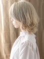 ホワイトシルバー/くびれミディアム/顔周りカット/ハイトーンeUP
