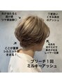 ブリーチ1回からのミルキーアッシュ♪光が当たると透け感、ツヤ感ともに◎くびれとレイヤーでシルエットも良く見えるおしゃれショートです!