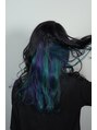 ベースは地毛のまま、インナーカラーで濃いめのブルーとエメラルドグリーンを巧く配色しましたっ!!下ろせば目立たないので厳しめの職場でも対応できるかも!!