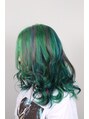 「緑にしたくて、あとはお任せ!」のオーダーを頂きました。グリーンベースにピンクと青を使用したメッシュカラー!寒色系統の緑と青にピンクがいいアクセントを加えてくれてとても可愛いスタイルになりましたっ!!