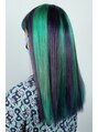 ダークバイオレットとミントグリーンのストライプカラー!メッシュよりもメリハリが出て個性的な派手髪に!!