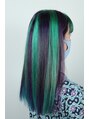 ダークバイオレットとミントグリーンのストライプカラー!メッシュよりもメリハリが出て個性的な派手髪に!!