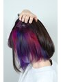 黒髪はそのままに、インナーにピンク・紫・青の3色をランダムに入れたインナースタイル。髪を下せばナチュラルに見え、髪が動いた時にチラっと派手に見えるので、規則や場所を選らばずに楽しめます!!