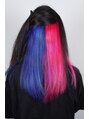 インナーにブルーとピンクのツートン派手派手カラー!顔周りにはさりげなくライムグリーンを入れました!