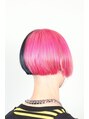 黒とピンクのツートンカラー!カットでガッツリラインを出した個性派ボブでとてもスッキリ!