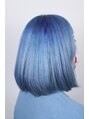 ロングヘアからボブにばっさりとイメチェンし、ブリーチ2回でしっかりとベースのトーンを上げ、ハイトーンなブルーシルバーに!
